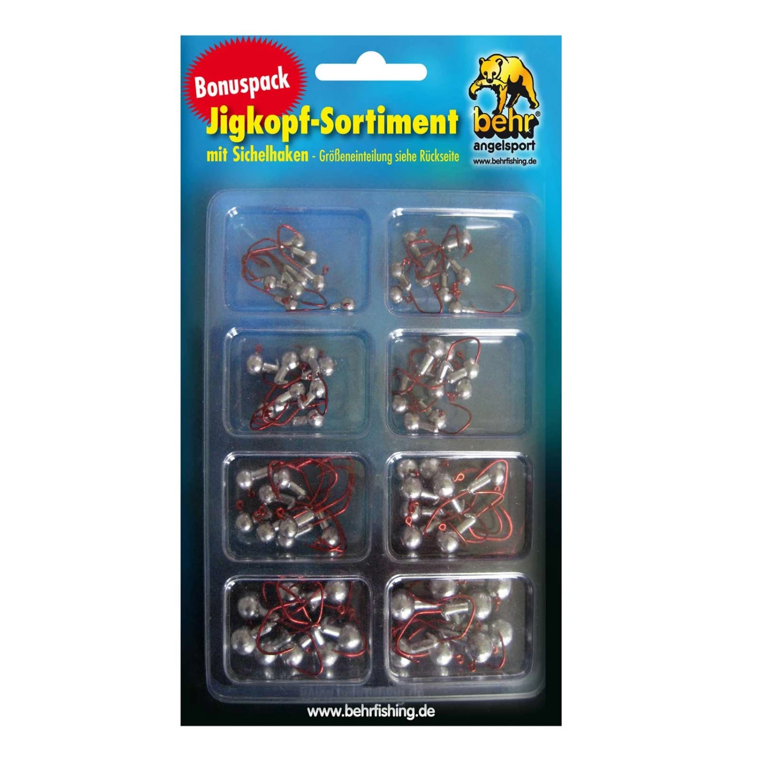 Merkmale Behr Jigkopf Set 64 Stück: Inhalt 64 Jigköpfe – Hakengröße 2 bis 6 – Gewicht 0,8 bis 5 Gramm – Hakenfarbe rot. Klassische Rundkopf-Form