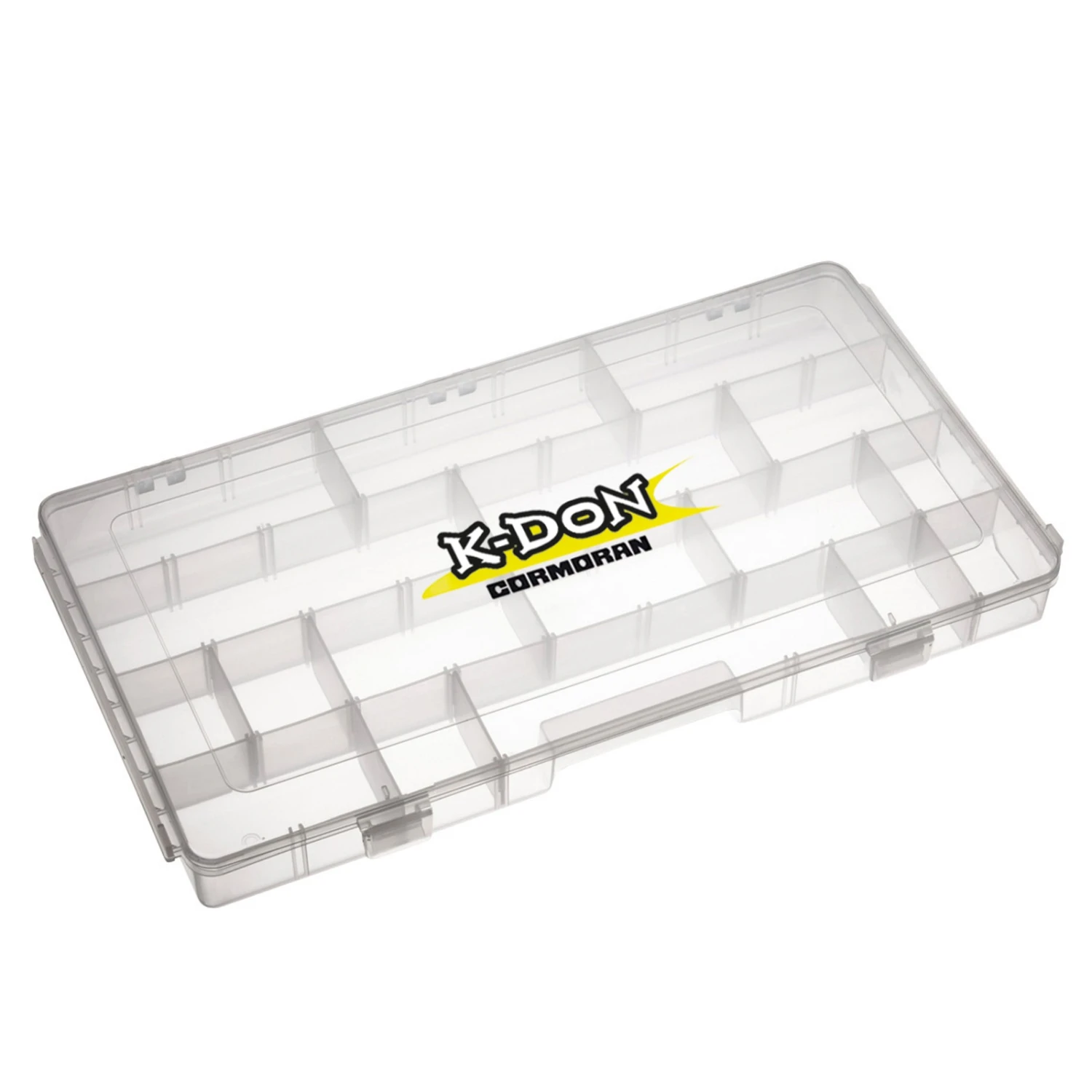 Große transparente Köderbox. 9 integrierte Fächer. Ideal zum verstauen von kleinen bis großen Kunstködern.
