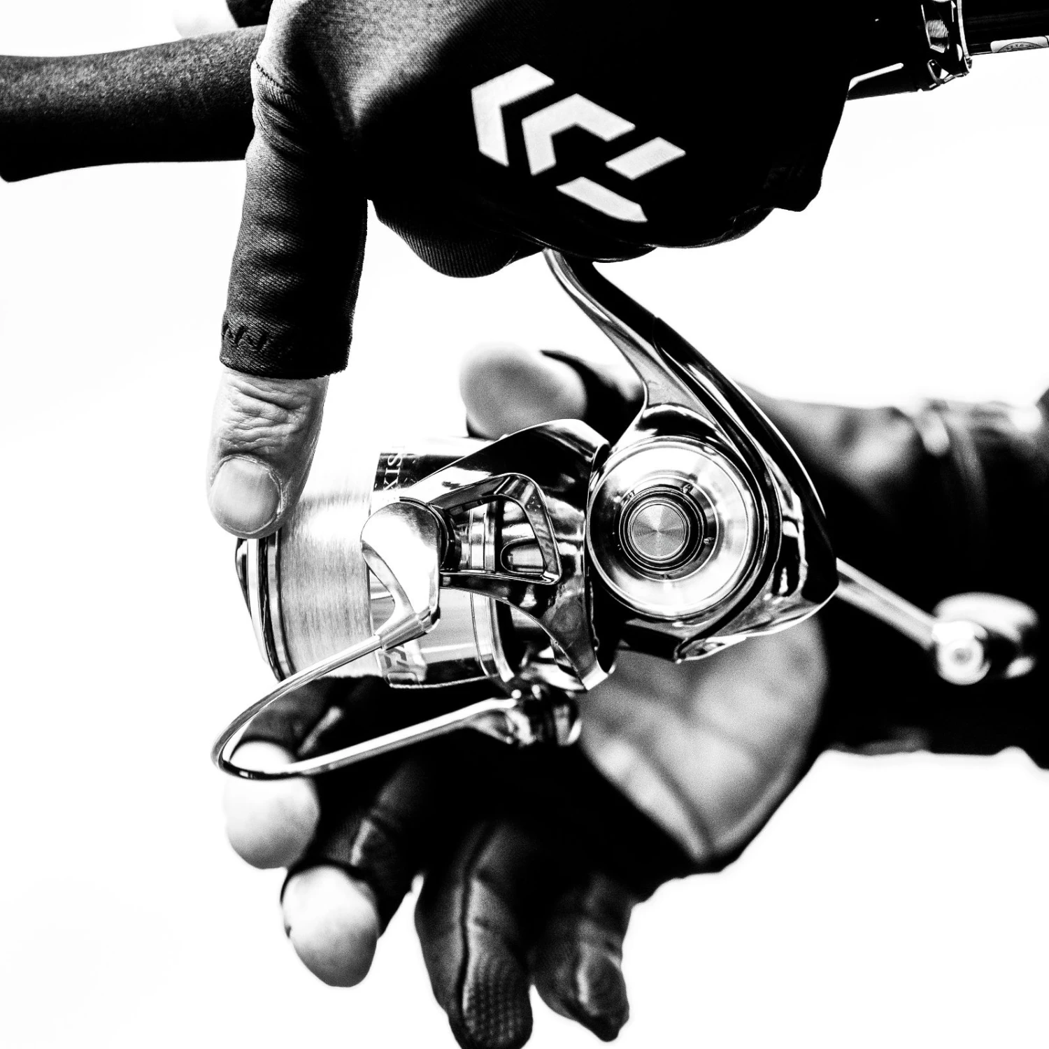 Die Kombination dieser Elemente schafft das neue Airdrive Konzept und ermöglicht die Konstruktion extrem leichter und feinfühliger Spinnrollen. Der Airdrive Bügel ist die nächste Evolution im Bügeldesign und fügt sich optimal in das neuartige Airdrive Konzept ein. DAIWA hat dabei einen etwas dünneren Bügel, der dennoch die benötigte Belastbarkeit bietet, konstruiert und zur zusätzlichen Gewichtsreduktion am Frontteil der Rolle beiträgt. Im Vergleich zur 18‘ Exist wird beim neuartigen Airdrive Bügel das Gewicht um 33% reduziert.