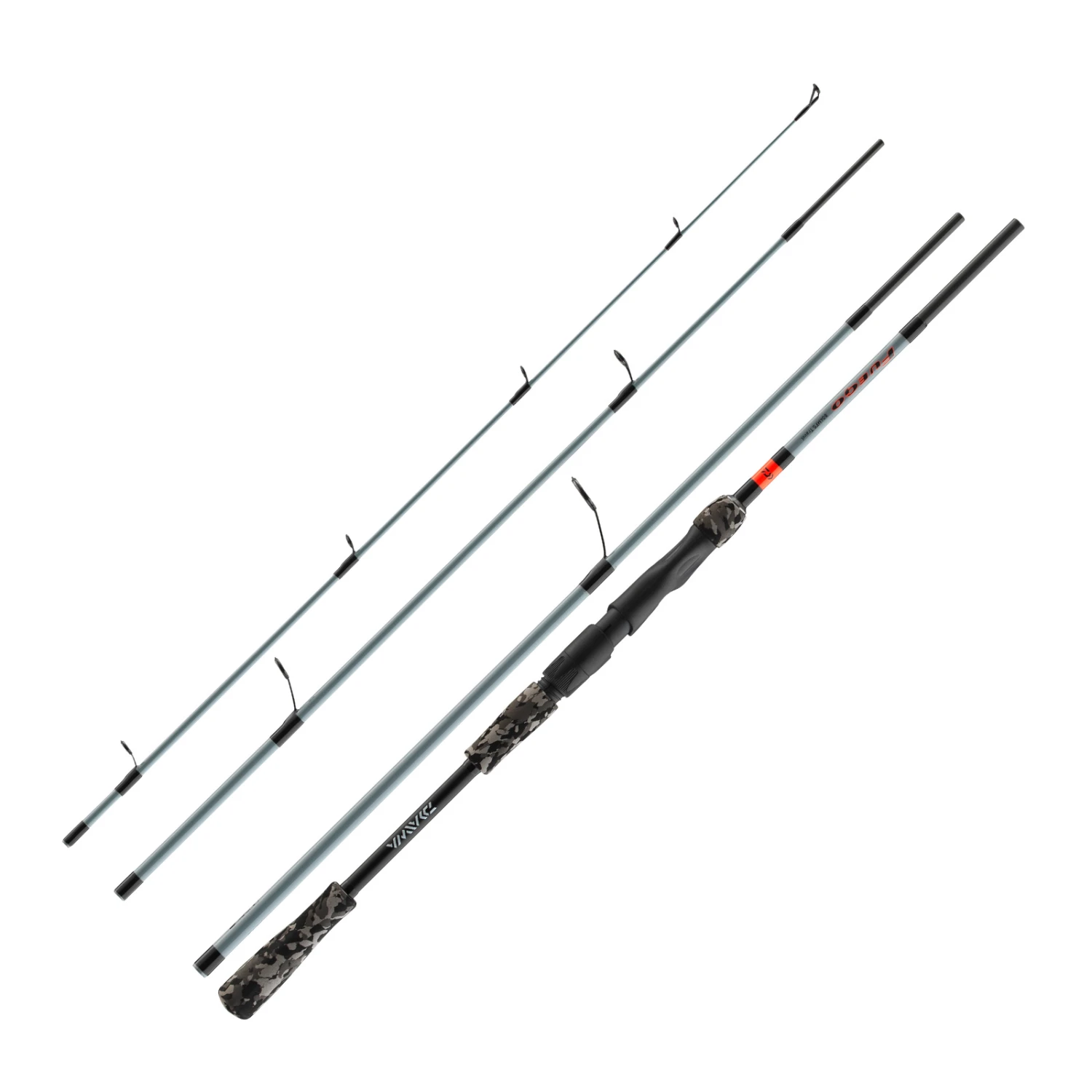 Die Ruten sind trotz vierfacher Teilung sehr schnell und belastbar, liegen ausgewogen in der Hand und bieten eine durchgängige Biegekurve, die man sonst nur von zweiteiligen Ruten gewohnt ist.