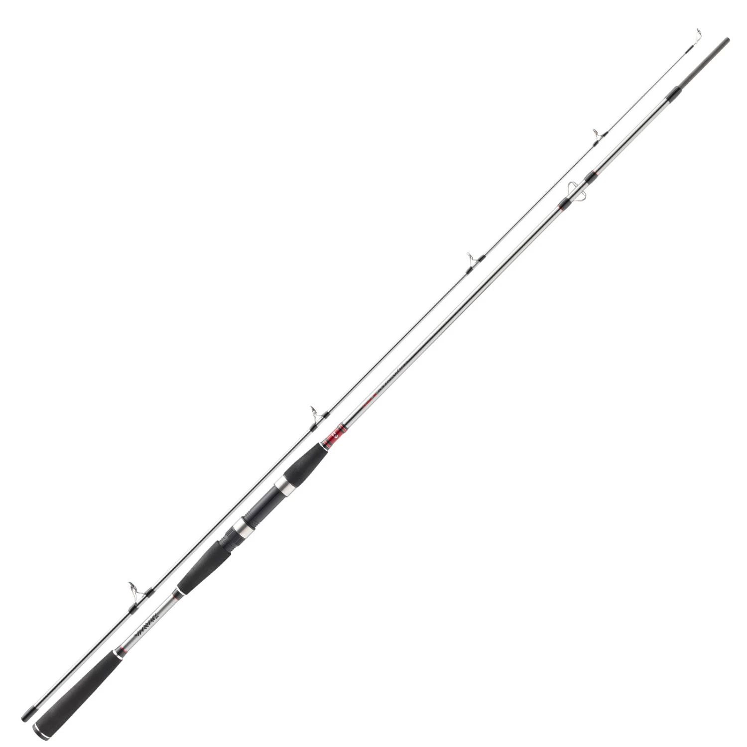Die seewasserbeständigen Titanium-Oxyd Doppelstegringe halten problemlos den dauerhaften Belastungen von geflochtenen Schnüren stand. Das angenehm in der Hand liegende, zweiteilige Griffstück aus EVA rundet die für dieses Preissegment außergewöhnlich hohe Ausstattung ab.