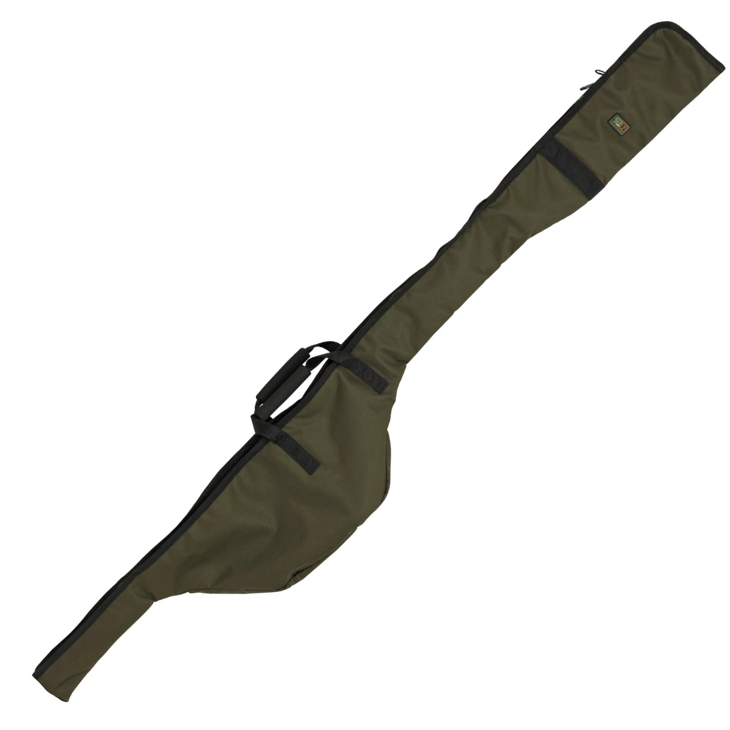 Das Fox R Single Rod Sleeve Rutenfutteral bietet Platz für eine vormontierte Karpfenrute mit einer Big Pit Rolle.