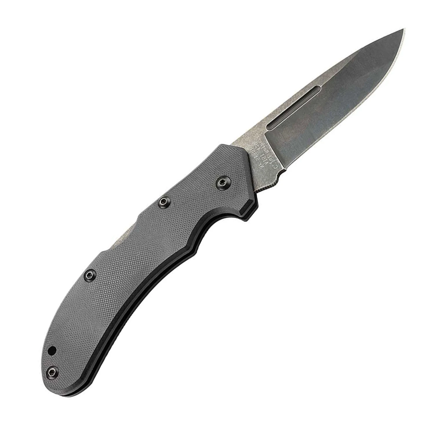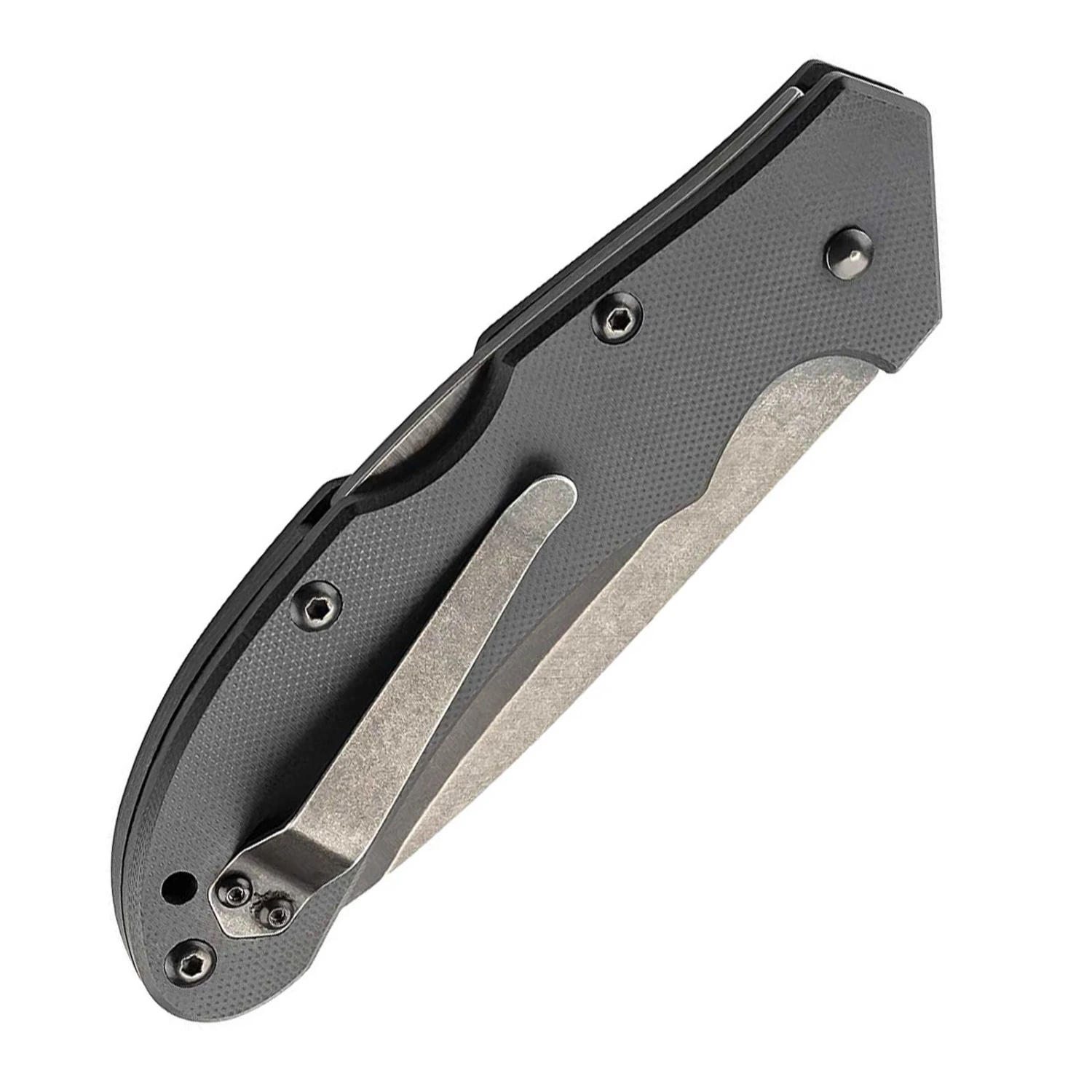 Das ergonomisch designte Heft ist mit schwarzen G10 Griffschalen ausgestattet und verfügt zusätzlich über eine Fangriemenöse und einen Taschenclip.