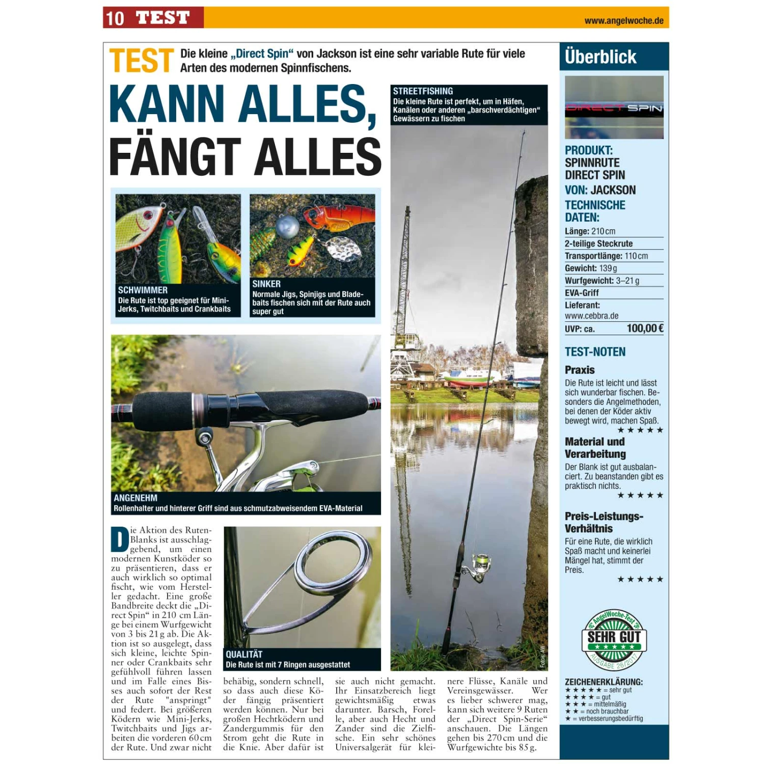 Die Jackson Direct Spin Spinnrute ist eine schnelle und präzise Spinnrute mit exzellenten Weitwurfeigenschaften. Mit diesen Ruten lassen sich nahezu alle Arten von Kunstködern professionell präsentieren. Bei diesen hochwertigen Ruten geraten auch anspruchsvolle Spezialisten ins Schwärmen.