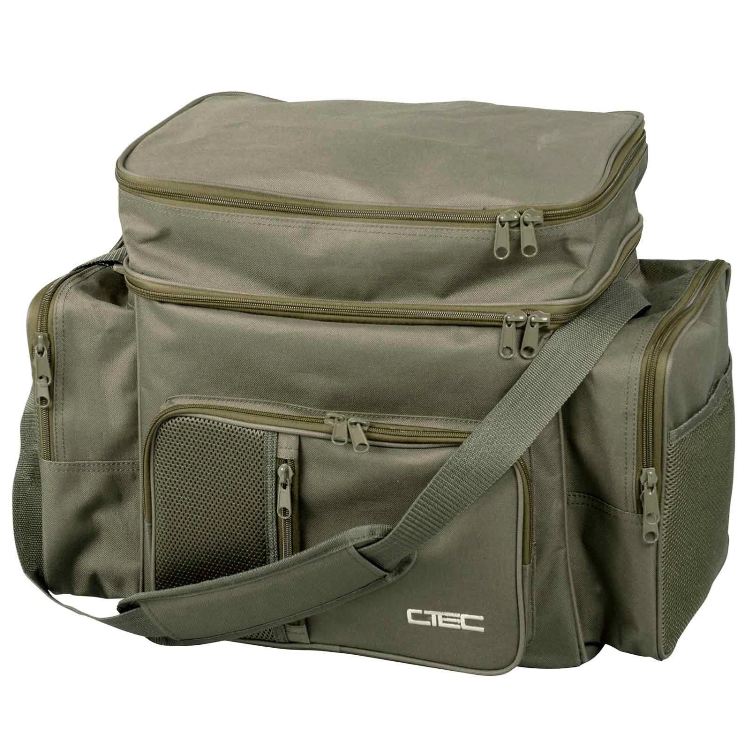 Die große Spro C-Tec Base Bag Angeltasche ist eine praktische Tasche mit einer Haupt- und vier Außentaschen. Auf der Tasche befindet sich ein spezielles Fach für Tackleboxen. Auf der Vorderseite können z.B. Handy, Schlüssel oder die Brieftasche verstaut werden. An den Seiten befinden sich ebenfalls geräumige Fächer für diverses Zubehör.