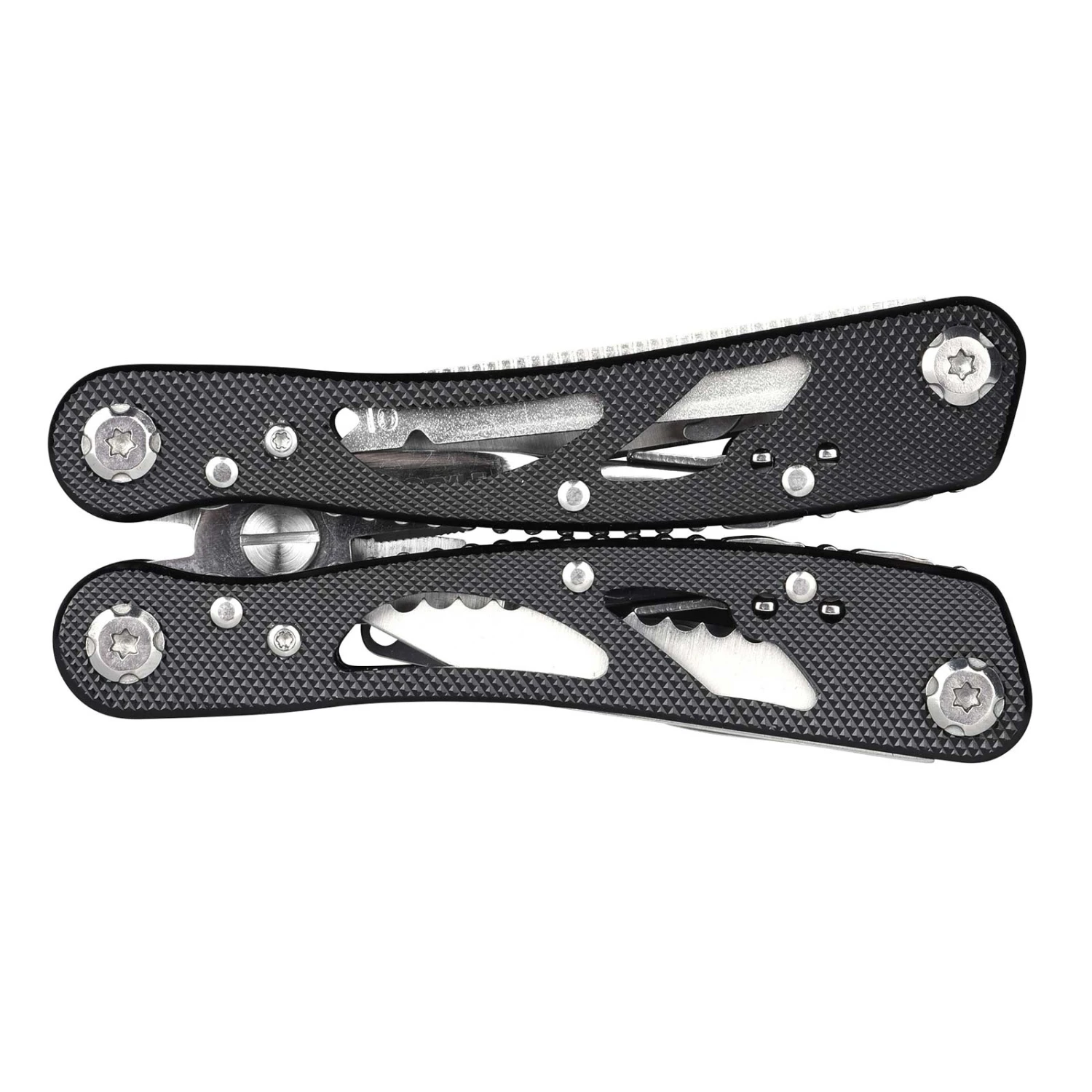 Dieses faltbare, hochwertige Multitool ist mit einer Sprengringzange und einer scharfen Schere speziell für geflochtene Angelschnüre ausgestattet. Zusammengefaltet passt er in eine praktische Tasche, die an einem Gürtel oder einer Tasche befestigt werden kann.