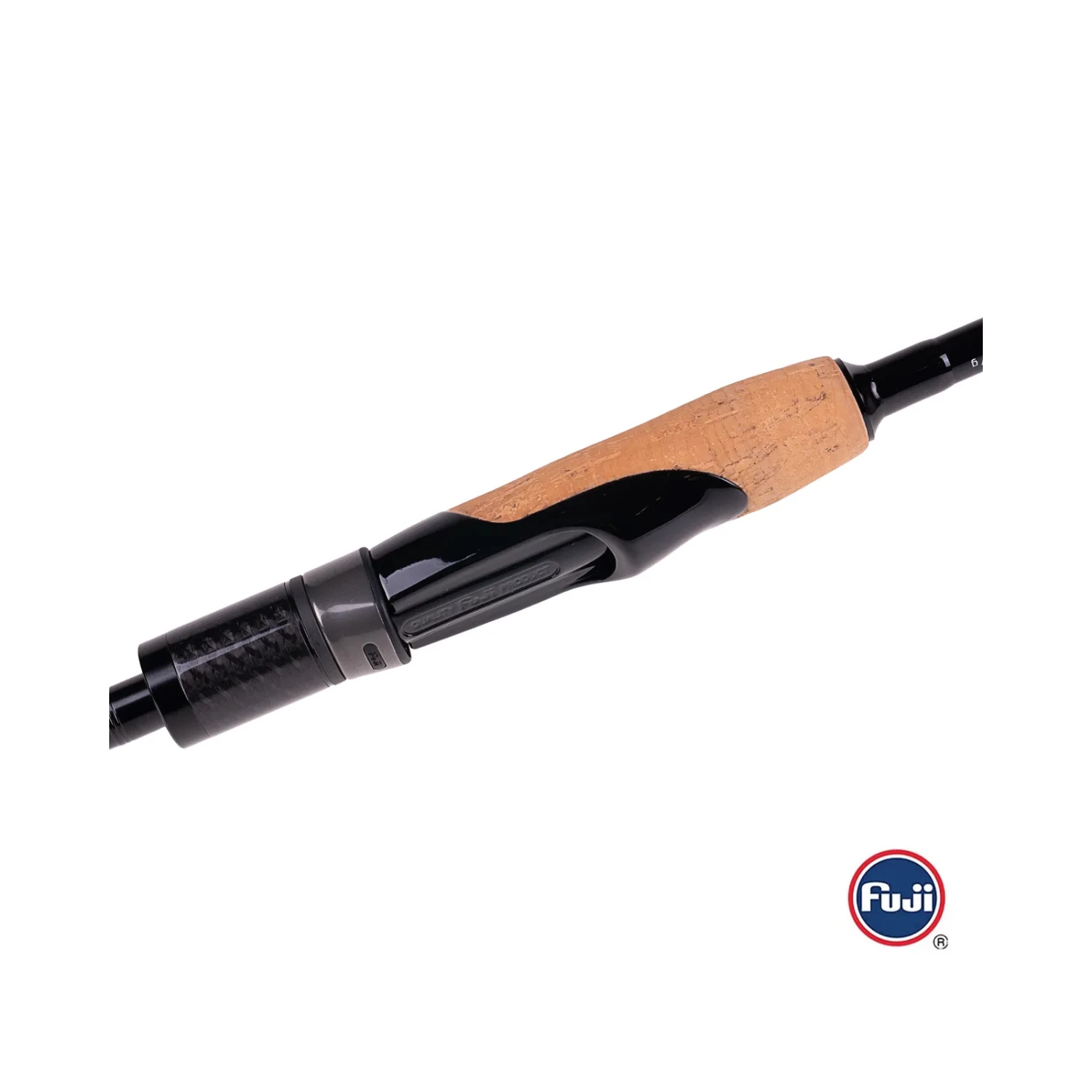 Die feinfühligen Blanks werden aus einer Komposition der hochwertigsten Toray Carbon Matten gefertigt. Als Ringe kommen Fuji SIC Feather Light Duty Modelle mit Edelstahlrahmen zum Einsatz.